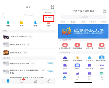 3、点击右上角的“邀请码”,输入江苏开放大学图书馆邀请码:ijskd,开大系统用户请输入邀请码:kdxt。