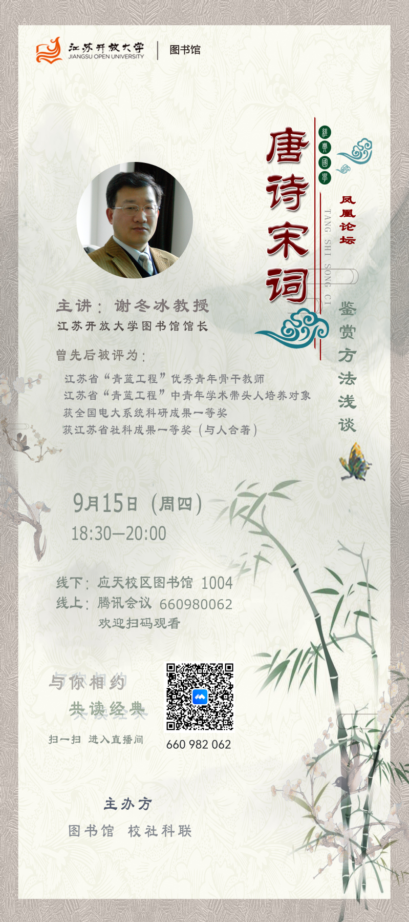 讲座预告 | 谢冬冰教授主讲《唐诗宋词鉴赏方法浅谈》
