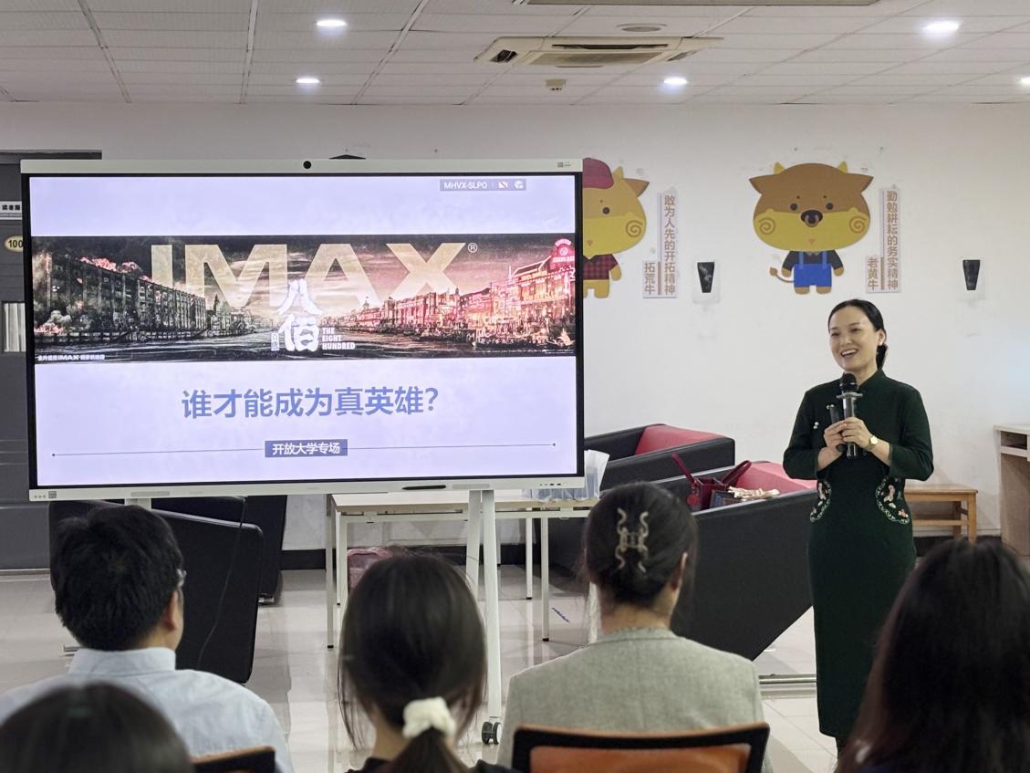期间,周蓉老师凭借其丰富的影视制作经验和专业知识,围绕电影《八佰》展开了精彩的讲解。她紧扣讲座主题,深入剖析了电影中的人物形象。在互动环节,现场气氛热烈而活跃。党员们踊跃发言,分享自己的观影感受。艺术学院党员尹丹说:“电影中战士们身绑炸弹、跳楼殉国的场景让我久久不能平静,他们用生命诠释了对祖国的忠诚,这种精神将激励我在今后的艺术创作中,更加注重挖掘和展现民族精神,创作出更多有深度、有温度的作品”。图书馆党员王晓艳感慨道:“在和平年代,我们更应铭记历史,珍惜来之不易的幸福生活。作为图书馆工作者,我们要注重传承和弘扬红色文化,为校园文化建设添砖加瓦”。