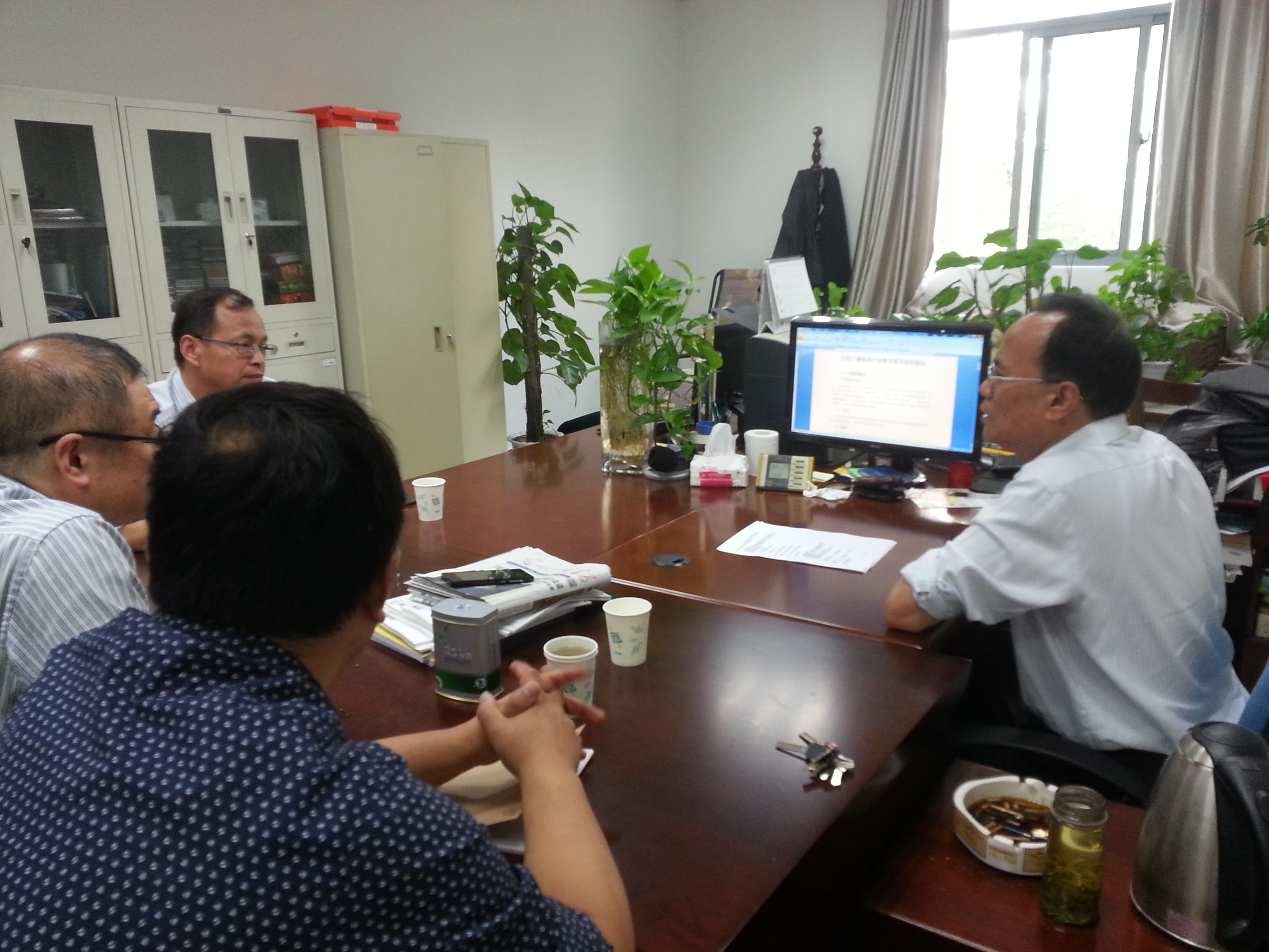 2015年10月26日陕西电大图书馆韦建文馆长、陈文强副馆长以及信息技术部李大勇老师一行三人来我校图书馆交流考察,我馆范建新馆长主持交流座谈。