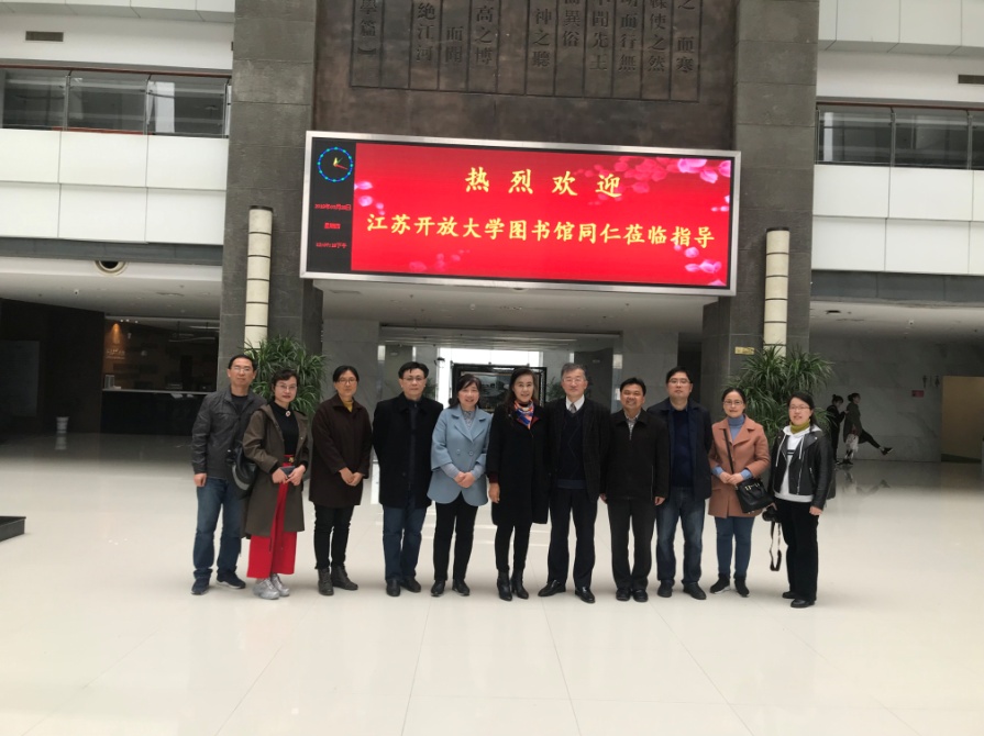 3月8日我校图书馆馆长谢冬冰一行六人至江南大学图书馆开展调研考察,无锡开放大学党委副书记王仁刚陪同考察。