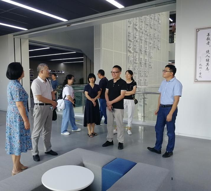 9月16日下午,图书馆并基建处一行人员在馆长谢冬冰的带领下前往江苏第二师范学院图书馆开展智慧图书馆建设专题调研活动。在座谈交流会上,二师院图书馆施雁冰馆长主要介绍了该校图书馆历史沿革、馆舍分布、文献资源存藏、阅读推广活动、信息参考咨询以及当前新馆建设与开展智慧型服务情况。谢冬冰馆长则围绕开放大学智慧图书馆方案对接注意事项、智慧图书馆建设预算、设计方案编修、读书节品牌文化活动以及图书馆优化教学科研服务支持等具体问题,与二师范图书馆推广培训部、资源建设部馆员老师进行了交流和探讨。